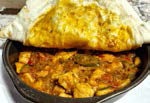 | carne de viţel, carne de pui, ceapă roşie, ardei gras, chili, condimente, lipie | ||